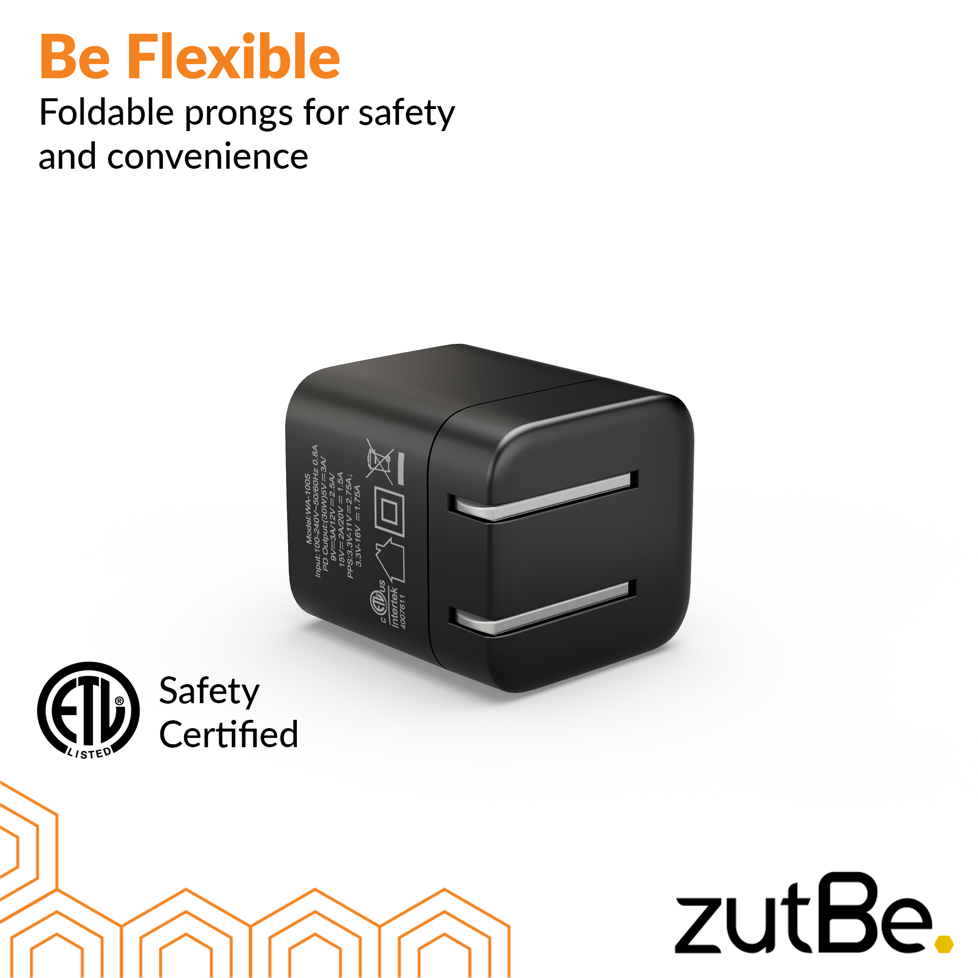 zutBe 30W Mini Wall Charger with Foldable Prongs